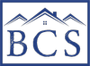 Logo for Blue Clear Sky Contracting featuring stylized white house rooftops and chimney on a black background with the company name in white text.